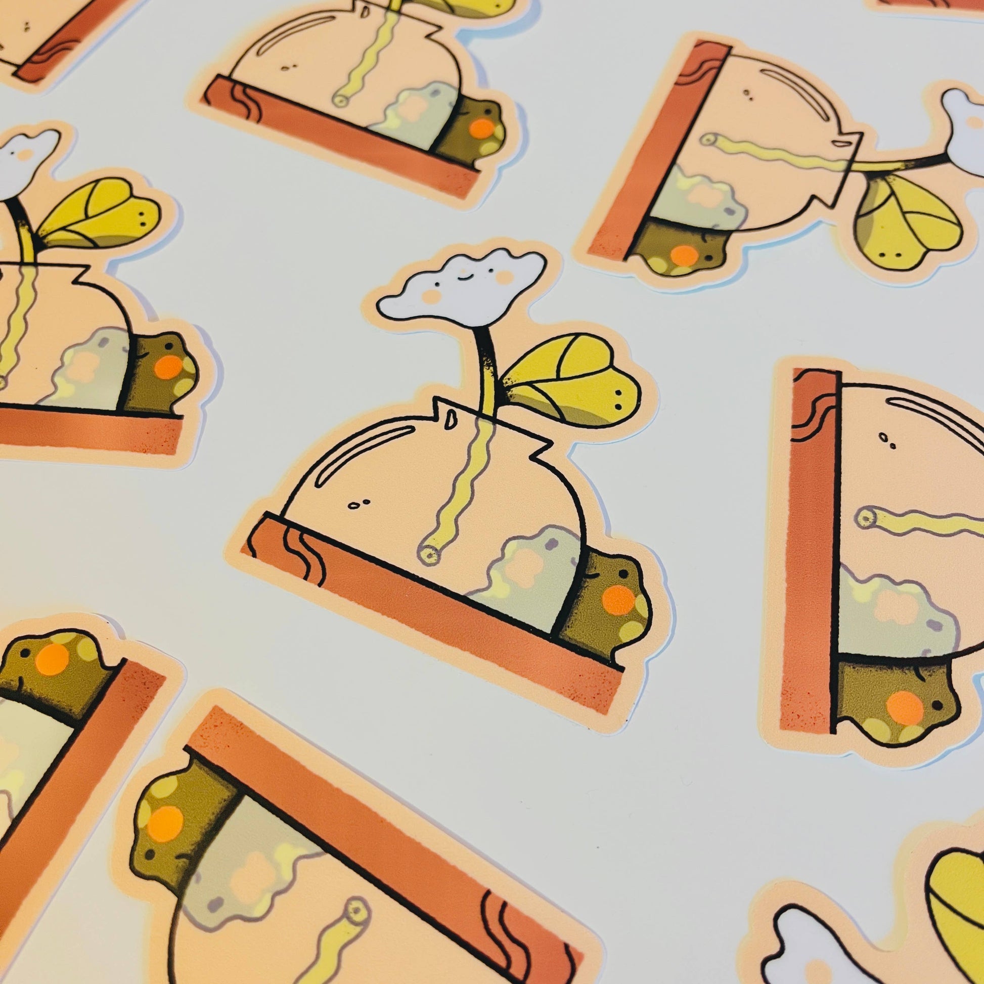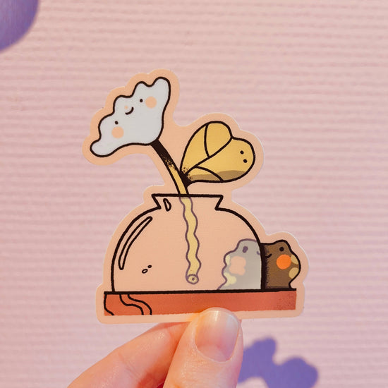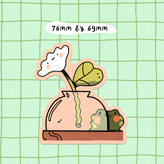 Douce et discrète, cette petite grenouille timide se cache derrière une fleur joyeuse, comme pour jouer à cache-cache avec le monde. Illustrée par Bloemkolie, elle apporte une touche de fantaisie et de tendresse à vos objets du quotidien — un autocollant plein de charme, parfait pour faire sourire à chaque regard.