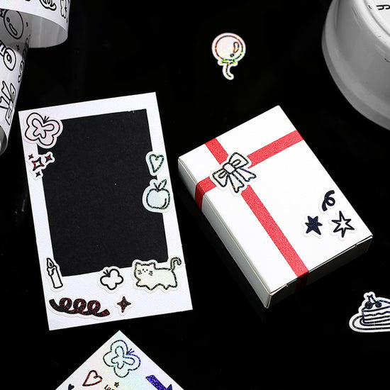 Ce rouleau d’autocollants réunit une succession de motifs tendres et raffinés, parfaits pour les amateurs de journaling et de papeterie créative.