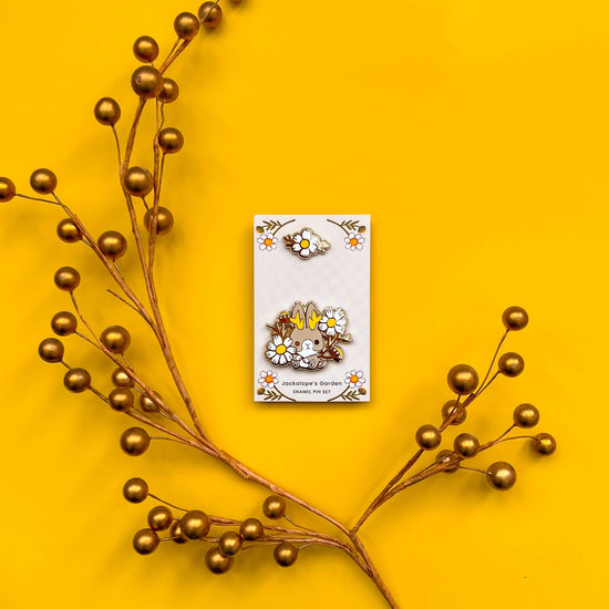 L’ensemble “Jackalope’s Garden” de Thousand Skies capture toute la magie de cette atmosphère : un duo de pin’s délicatement illustrés, combinant poésie et fantaisie.