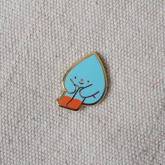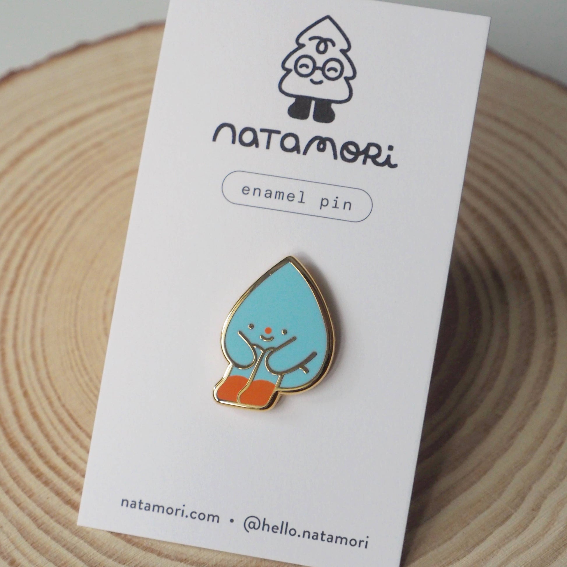 Le pin’s Goutte d’eau de Natamori représente une goutte souriante, assise paisiblement, comme une invitation à ralentir et à respirer. Son illustration simple et expressive évoque la nature, la tranquillité et ces moments où l’on prend le temps de se poser.