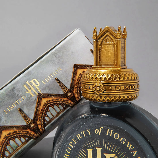 Inspirée par la petite balle ailée la plus convoitée du Quidditch, cette encre célèbre les moments de triomphe et d’audace. Le flacon est surmonté d’un bouchon sculpté représentant le Vif d’Or, transformant cette encre en véritable objet de collection.