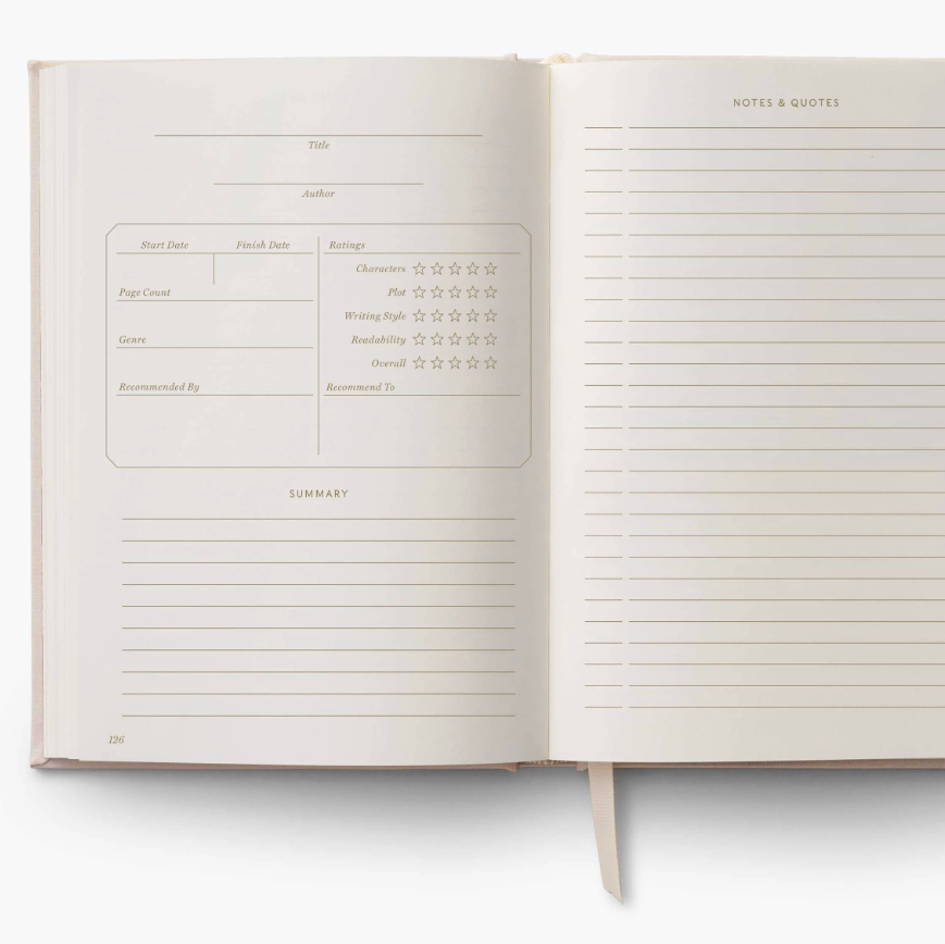 Habillé d’une couverture textile délicatement brodée, il mêle charme vintage et élégance contemporaine. À l’intérieur, chaque section a été imaginée pour accompagner votre vie de lecteur·rice : noter vos découvertes, suivre vos prêts, garder mémoire de vos coups de cœur.