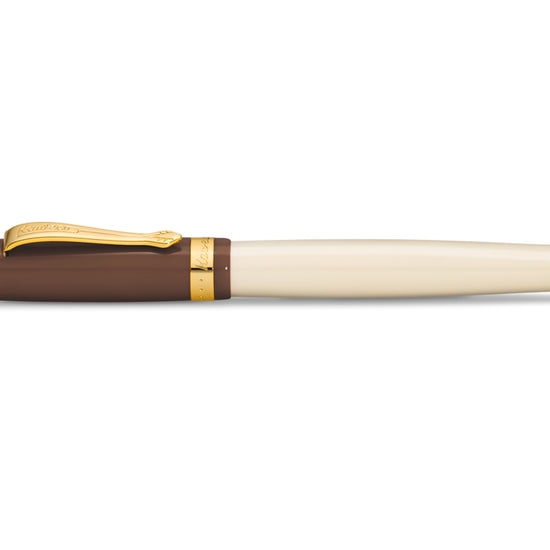 Avec son corps brun profond et ses détails dorés, le Kaweco Student 20’s Jazz incarne toute l’énergie et l’élégance d’une époque marquée par le jazz, les soirées flamboyantes et l’effervescence créative. Il évoque les clubs enfumés, les rythmes syncopés et la liberté artistique qui régnait au cœur des Années folles.