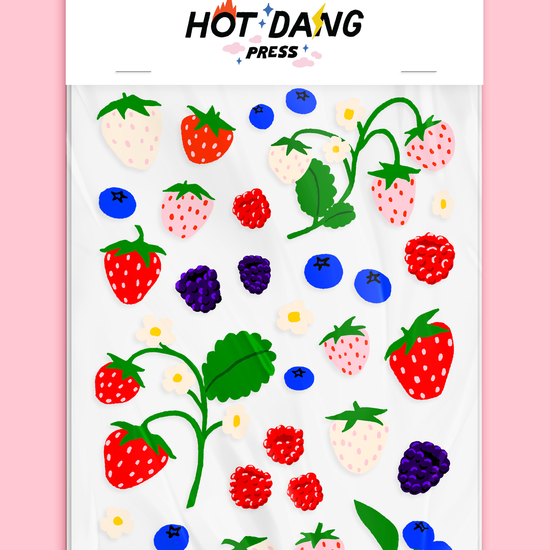 Ce transfert “All Berries” capture parfaitement l’esprit Hot Dang Press : un design audacieux, une esthétique rétro et cette touche décalée qui fait sourire.