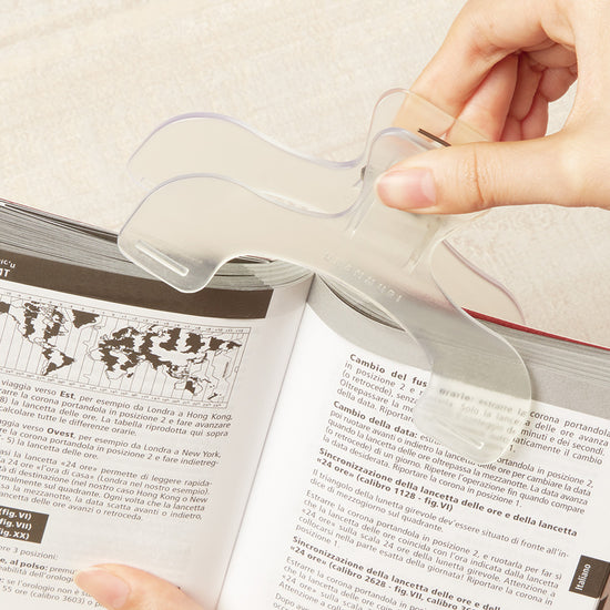 Son design arqué maintient les pages ouvertes sans jamais appuyer sur la reliure, ce qui la rend parfaite pour les carnets épais, journaux créatifs, planners ou livres fragiles. Elle se fixe directement sur les pages et les maintient bien à plat, sans les marquer.