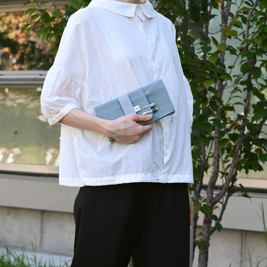 Conçue initialement pour accueillir jusqu’à cinq carnets RO-BIKI NOTE, cette housse en coton biologique (No. 8, 16 oz) incarne le mélange parfait entre robustesse et discrétion. Grâce à ses bandes de connexion réglables, vos carnets restent bien en place tout en étant faciles à interchanger.