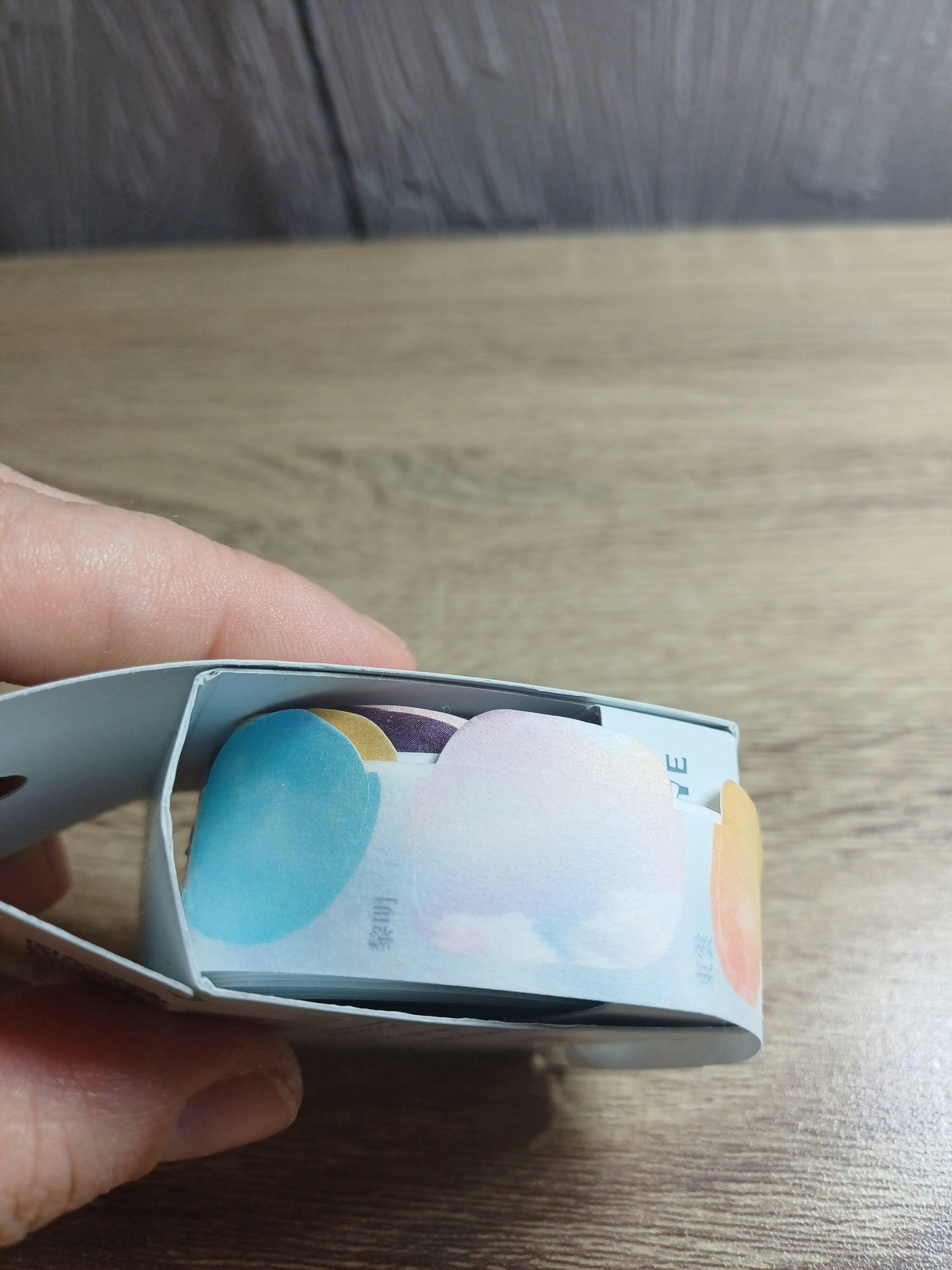 Ces stickers décoratifs sont présentés dans un packaging astucieux qui fait aussi office de distributeur. Le rouleau se déroule par une fente : il suffit de tirer pour faire apparaître le prochain sticker et le détacher facilement.