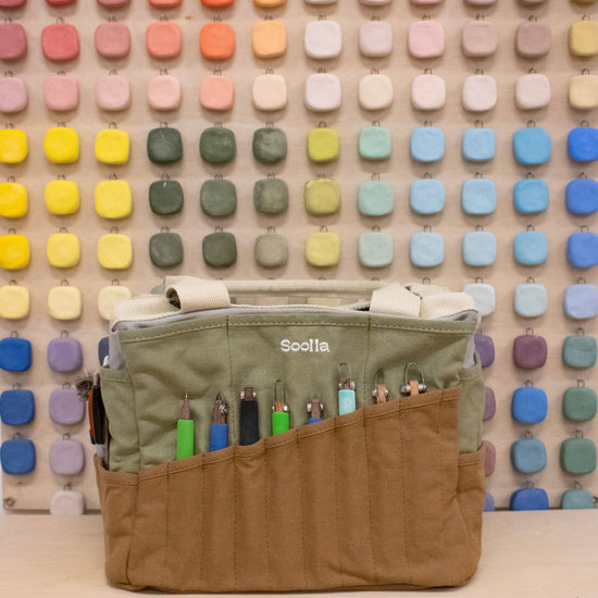 Soolla est une marque née au cœur d’un atelier de poterie en Californie, fondée par une artiste qui en avait assez de devoir choisir entre un sac fonctionnel mais sans charme, ou beau mais peu pratique.