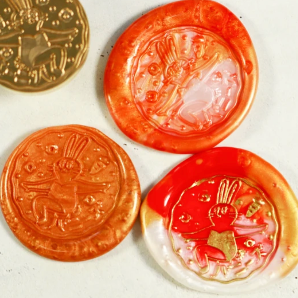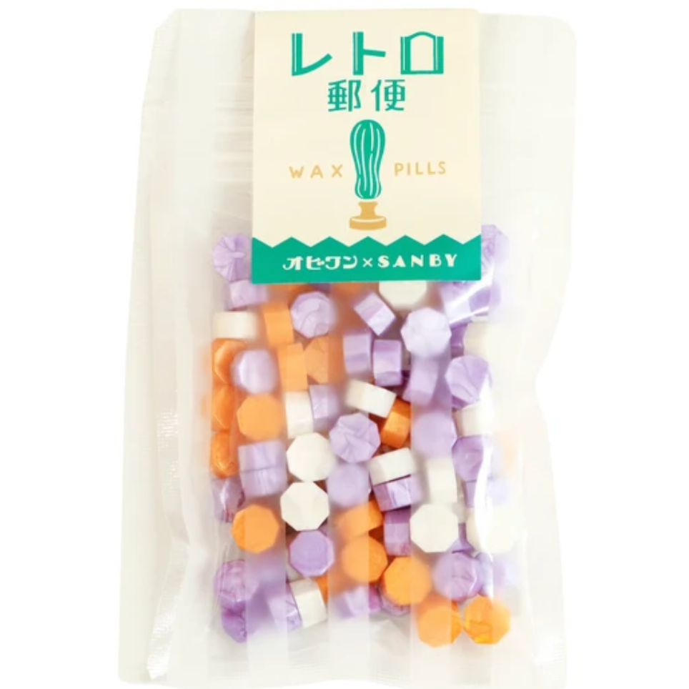 Un joli coffret de pastilles de cire imaginé sous la direction artistique de l’illustrateur japonais Obiwan (ob1toy). Chaque set contient environ 100 pastilles, prêtes à être fondues pour créer de superbes cachets uniques.