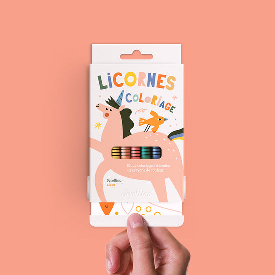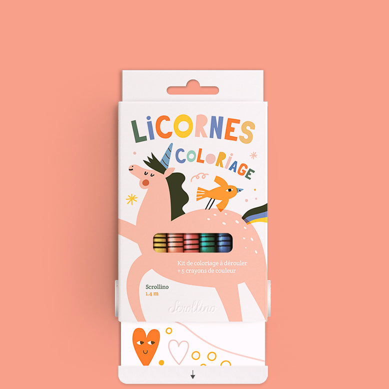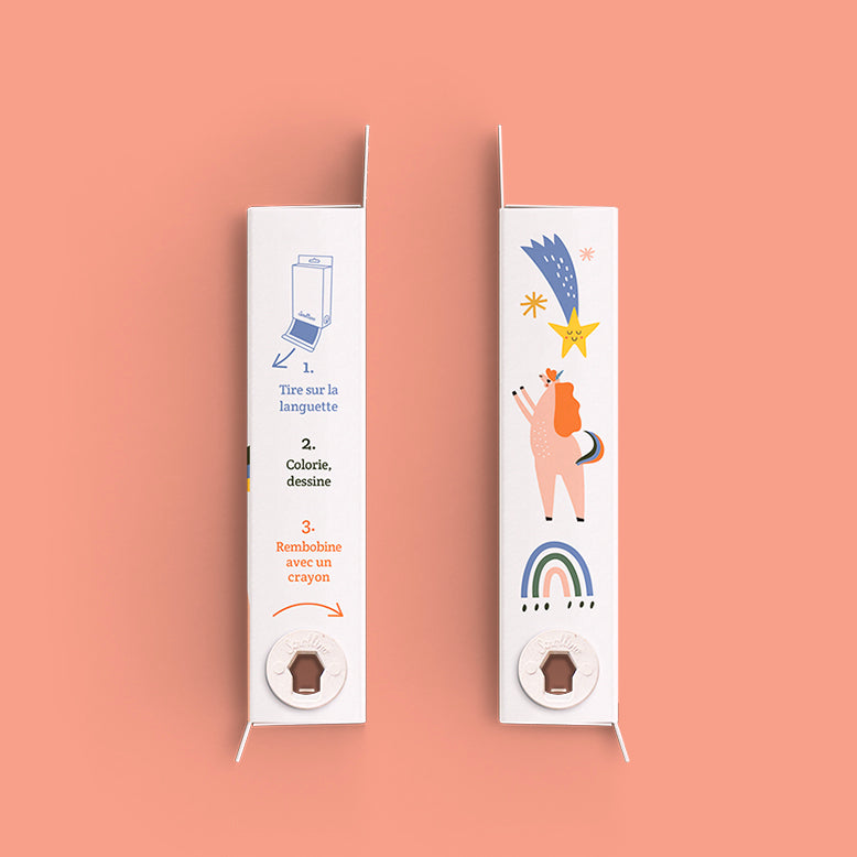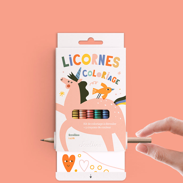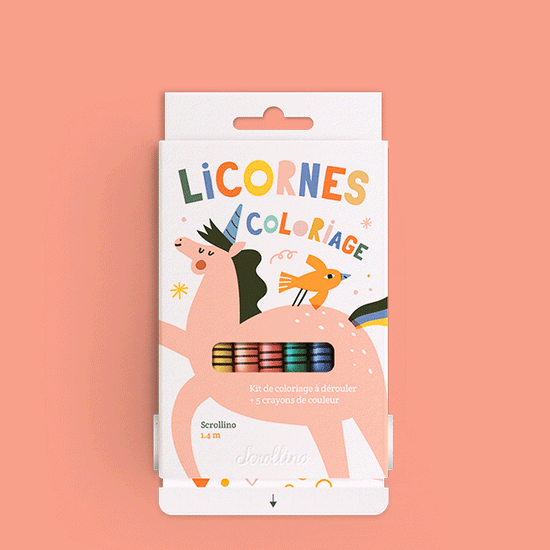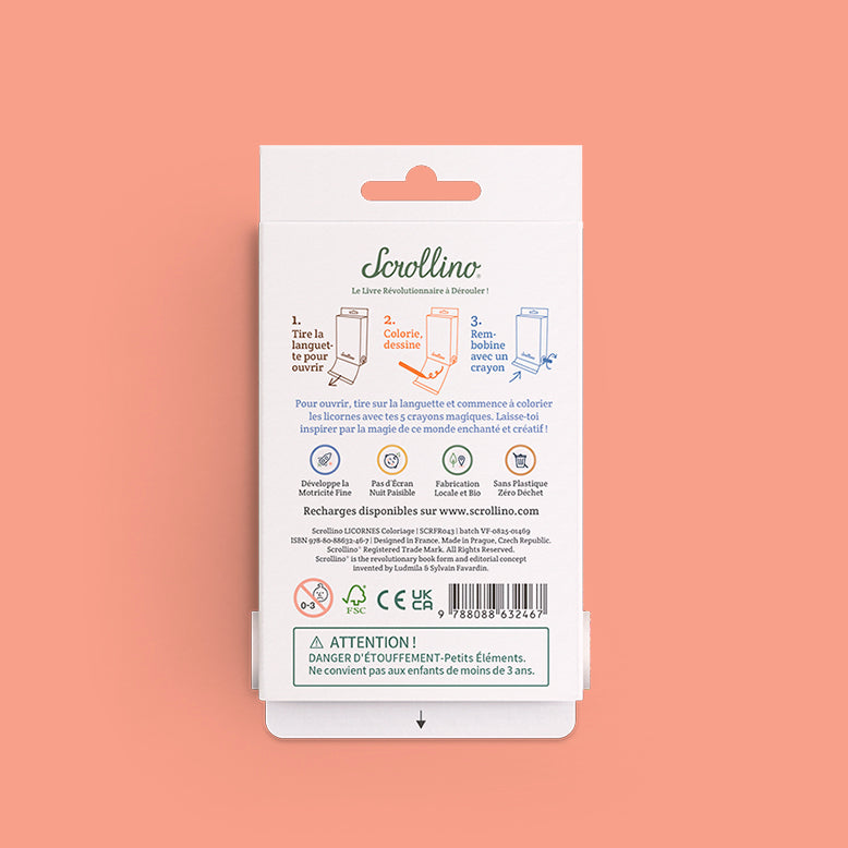 Contenu : 1 Scrollino à dérouler + 5 crayons de couleur inclus 🖍️