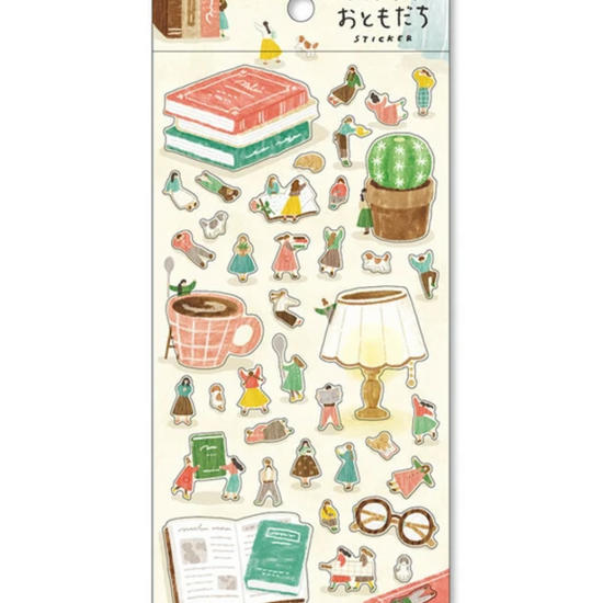 Avec un peu d’imagination, chaque collage devient une histoire à inventer : un nain caché dans une tasse de thé, un autre qui escalade une pile de livres, une conversation secrète derrière une plante… Ce sont des stickers à coller avec intention, comme on disposerait les éléments d’un petit théâtre de papier.