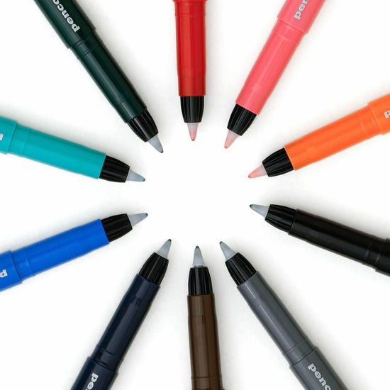 Son encre à base d’eau, associée à une pointe en résine, offre une écriture souple et régulière. Chaque couleur est spécialement formulée par Penco, avec une attention particulière portée à l’harmonie et à la lisibilité. Des teintes vives côtoient des couleurs plus profondes et feutrées, faciles à utiliser aussi bien à l’école qu’au travail.