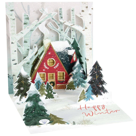 Une petite scène d’hiver s’ouvre comme un secret : un chalet niché dans la neige, des arbres givrés, une atmosphère douce et silencieuse… et au cœur du décor, une lumière intégrée qui illumine chaque détail. Cette carte contextuelle 3D, entièrement conçue à la main, se déploie comme un véritable trésor miniature. Les textes proposés à l’intérieur conviennent à de nombreuses occasions : fêtes de fin d’année, messages chaleureux, mots d’amitié ou simple attention lumineuse. Au dos, une surface d’écriture supplémentaire vous permet d’ajouter un message personnel.
