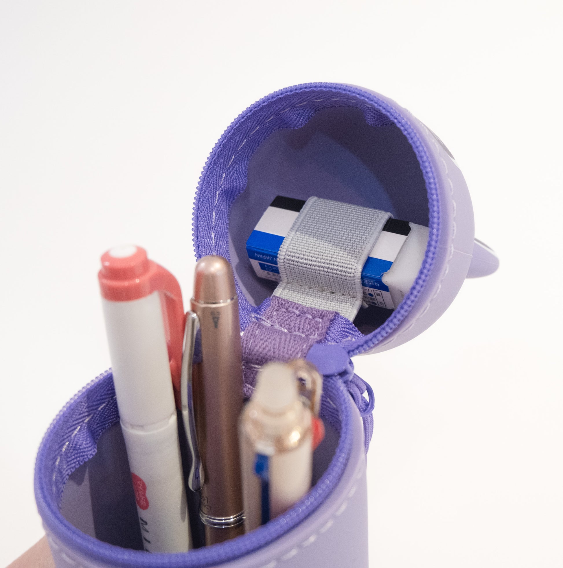 À l’intérieur, une petite bande élastique sous le “capuchon” permet de ranger une gomme, une clé USB ou un petit taille-crayon. Un détail bien pensé qui rend ces trousses encore plus fonctionnelles !
